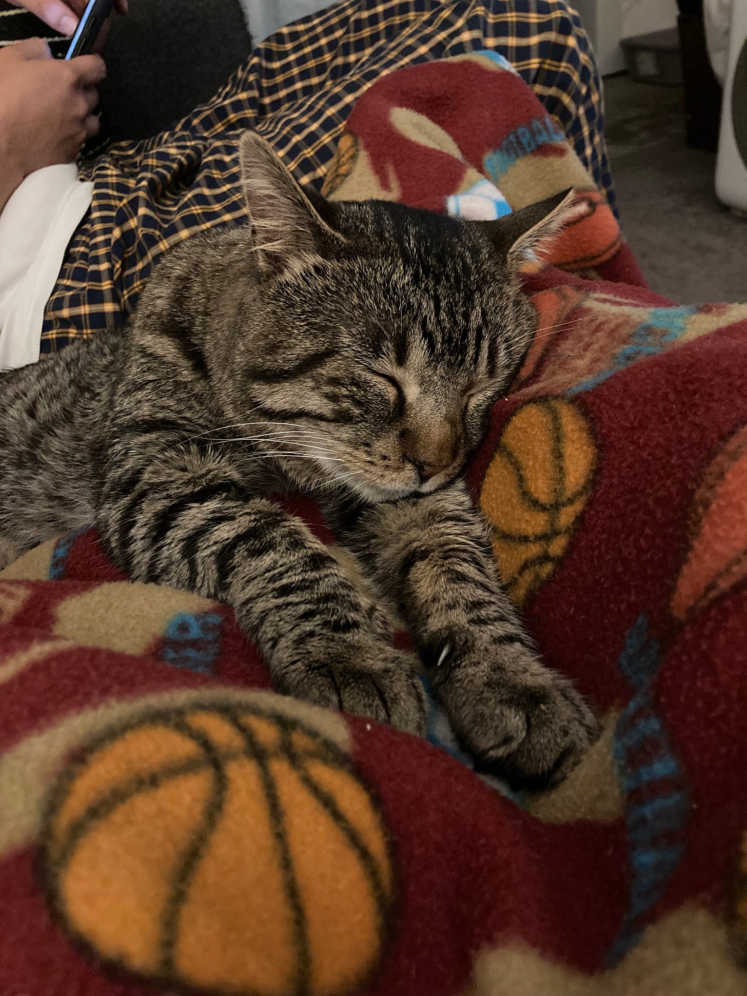 Then we paused to eat Thai food. That was important and significant and all the things because all this setting up of props and equipment and jumping around karaoke-ing to the song really took it out of us. We did a few more takes after lunch and then cleaned up and everyone went home. I took a nap with my new cat Douglas. I haven’t tested it yet for sure but he’s better than a weighted blanket.